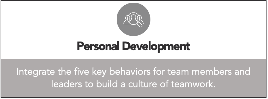 The Five Behaviors® Personal Development Assessment provides participants with personal insights by identifying their tendencies and preferences and how to overcome barriers related to each of the Five Behaviors® to build a culture of teamwork. This assessment is best for individual coaching.