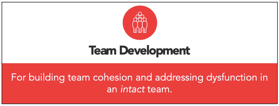 The Five Behaviours® Team Development Assessment provides the team benchmarks the effectiveness in all the Five Behaviours identifying where the areas of strengths and improvement are to build team cohesion. This assessment is best for small – medium sized intact teams that have been working together for a minimum of 6 months.